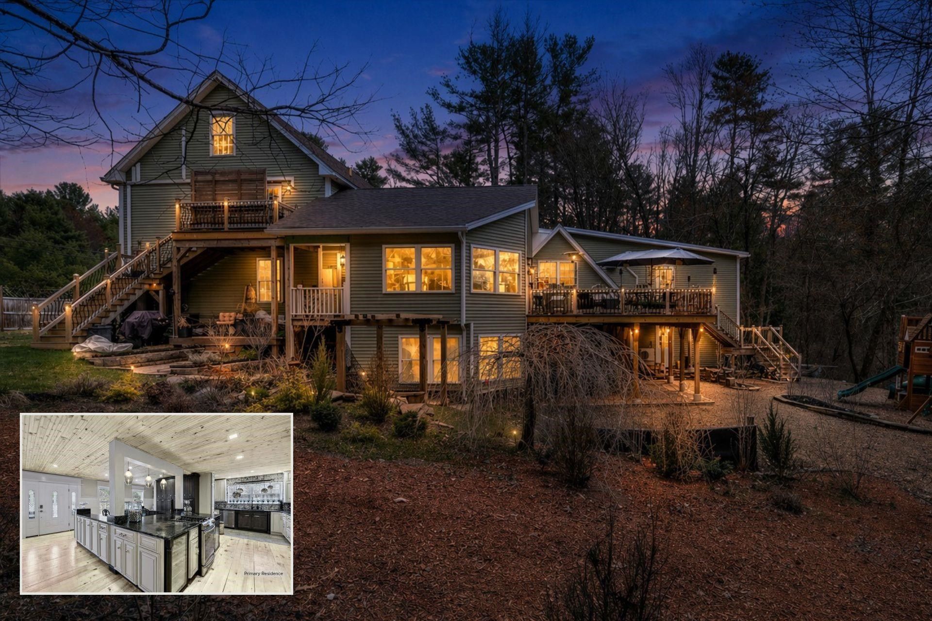 A rare multigenerational offering in Brookline, this thoughtfully rebuilt property (2004) offers exceptional space, flexibility, and value. The main residence features 3 bedrooms, a finished attic, a private guest suite with kitchenette and bath, and a spacious chef's kitchen with abundant counter space, storage, and a beautiful copper sink. The legal 2-bedroom ADU, complete with its own kitchen, living room, and bathroom, provides ideal space for extended family, guests, or flexible living needs. Additional highlights include two separate parking areas, a large deck and patio with firepit, and a two-story barn perfect for storage, hobbies, workshop space, or potential office use. Loved by the same family for years, this home is filled with natural light, room to gather, and space to grow. Set in desirable Brookline, this property offers the charm of a small New Hampshire town with easy access to local amenities, conservation land, and nearby trails, including Brookline's well-known trail network and conservation areas. Showings start at open house Friday 4/24 from 4:30PM-6:30PM and Saturday 4/25 from 11AM-1PM. SELLERS ARE OFFERING A $25,000 CLOSING CREDIT FOR PAINTING, CARPETING OR AN INTEREST RATE BUY-DOWN!!!