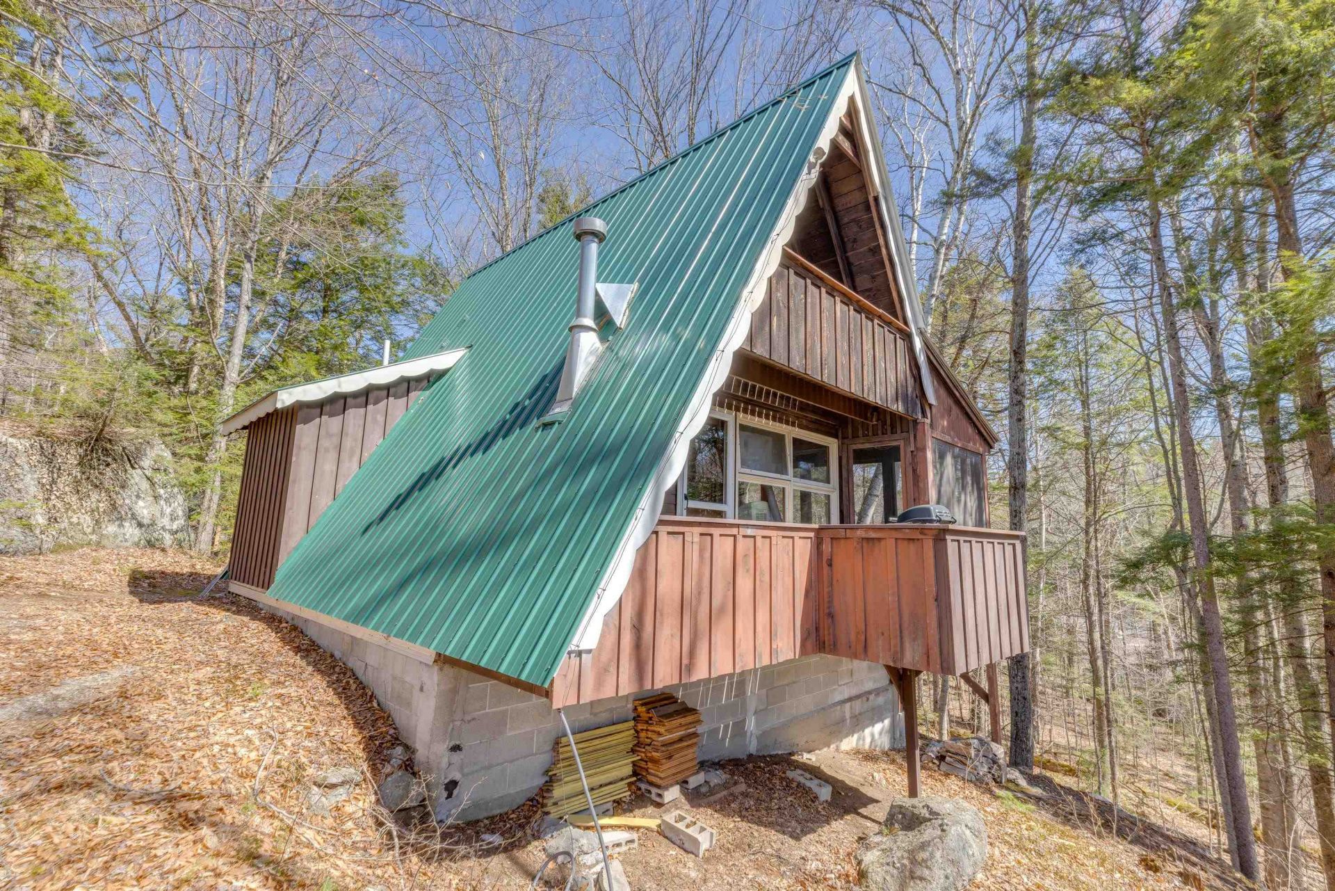 Secluded A-Frame Retreat Near Stinson Lake. Discover the perfect New Hampshire getaway on Stinson Lake Road in Rumney. Tucked away on 1.27 private acres with peaceful frontage on Stinson Brook, this charming A-frame offers the ideal blend of seclusion and accessibility. The cozy home features 2 bedrooms and 1 bathroom with just under 900 square feet of living space, complemented by a huge wraparound three-season porch, which is perfect for relaxing, entertaining, or simply enjoying the surrounding nature. Across the street from the White Mountain National Forest, providing direct access to endless outdoor adventure right from your doorstep. Located just minutes from Stinson Lake, this retreat is a dream for outdoor enthusiasts, offering convenient access to hiking, fishing, hunting, snowmobiling, skiing, and year-round recreation. Whether you're looking for a weekend escape or a rustic getaway, this A-frame would make an excellent hunting or fishing camp. Secluded yet easily accessible, the property offers the privacy and tranquility you crave. A rare opportunity to own a peaceful retreat in one of New Hampshire's most scenic outdoor destinations.