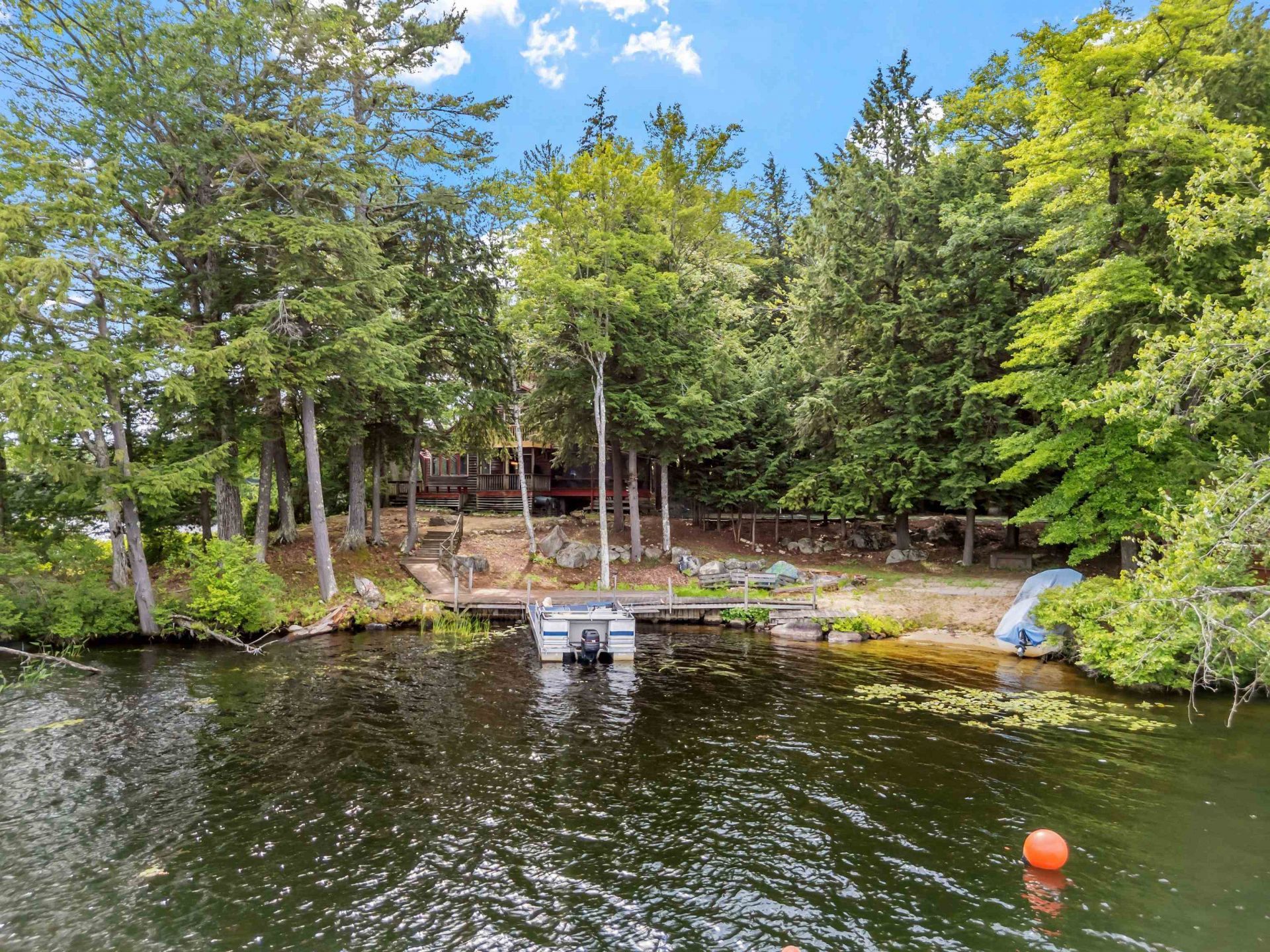 Solitude awaits on this 2.9-acre private island on the shores of Lake Winnipesaukee in Moultonborough, NH. Boasting 1,391 feet of pristine shoreline, the island is set in a quiet part of the lake?perfect for paddling, fishing, and enjoying the peaceful surroundings. The property features multiple seating areas thoughtfully positioned around the island, allowing you to take in the water views from every direction. A protected cove offers a safe haven for your boat, while the walk-in beach provides easy, gradual access to the lake. For recreation, the island even includes its own private tennis court. Inside the rustic, open-concept main house, you'll find plenty of space for entertaining family and friends. The main level includes a primary bedroom, with two additional bedrooms located upstairs. Rare for island properties, the home is set on a foundation and also offers a lower level for additional living or storage space. A separate solarium houses an indoor pool, creating a unique retreat to enjoy in any weather. A detached garage provides excellent storage and offers potential for a variety of future uses. The property also includes a mainland right-of-way with a dock and parking for your cars, ensuring convenient access to and from the island. Offering ultimate privacy and a one-of-a-kind setting, this property is the perfect escape for endless summer fun and relaxation.