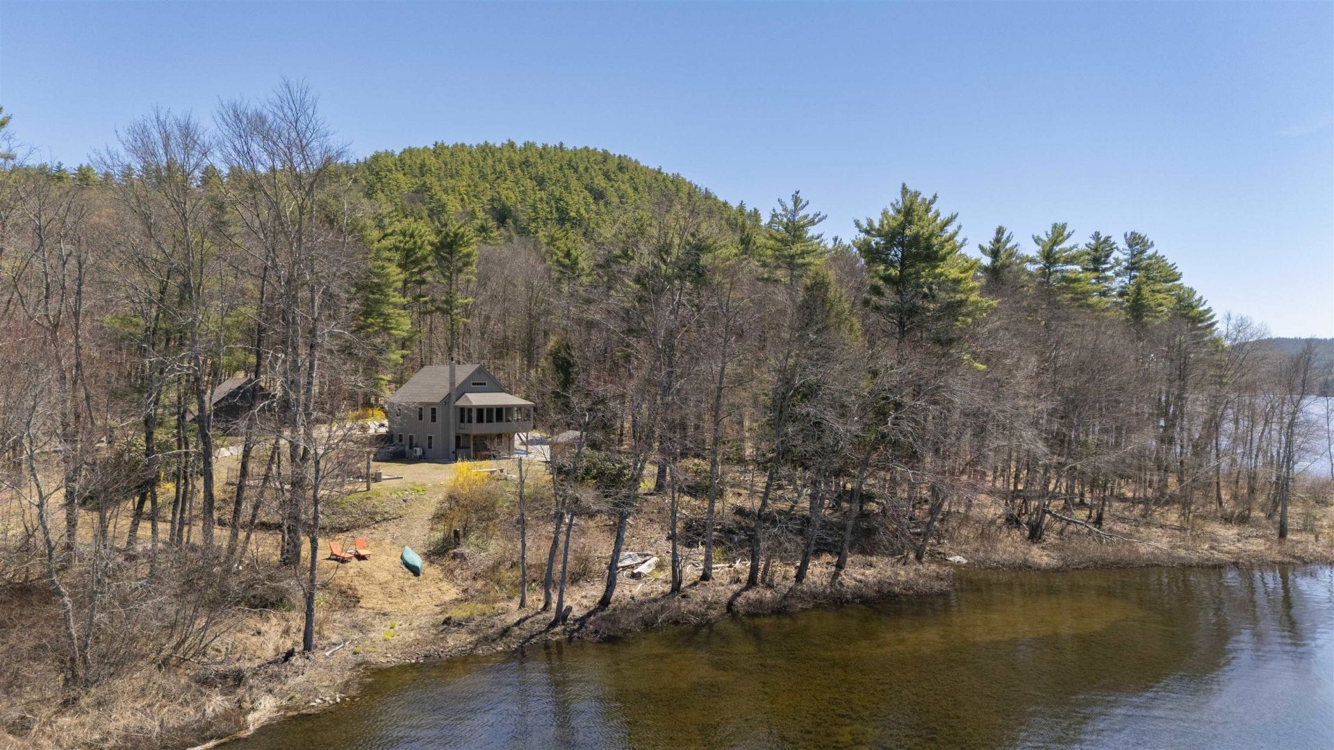 Every once in a while, a truly special property comes along, & this idyllic waterfront retreat is built on land that has been cherished by the same family for 92 years. Set on 1.20 private acres with 175.5 feet of shoreline on beautiful Lake Massasecum, this stunning 5-year-young custom Contemporary Cape was thoughtfully designed with efficiency & quality craftsmanship. Perfectly blending with its natural surroundings, this unique property provides exceptional privacy & generous outdoor space with ample room for vehicles, boats, trailers, & recreational toys. Enjoy direct lake access that will accommodate a 6' x 30' dock & up to three boat slips. A detached garage & additional outbuildings provide covered storage. The grounds are equally inviting, featuring raised garden beds, fruit trees, & a charming fire pit area that is perfect for s'mores, storytelling & sunsets by the water. Inside, the home welcomes you with a practical mudroom complete with built-in cubbies. The well-appointed kitchen showcases beautiful custom curly maple countertops taken from the land, a cozy breakfast area with bar seating, & a seamless flow into the living room. The cathedral ceiling with exposed beams creates a warm, rustic charm & natural light pours in through a transom window above the sliding doors which lead to a spacious 10' x 23' covered porch overlooking the lake. The dining area offers the perfect setting for meals, card games, or puzzles. The main level primary bedroom & full bath provide convenient one-level living. Downstairs, the inviting lower level features the comforting warmth of a wood stove & abundant natural light from double doors that open toward the lake. This flexible living space includes a family room, two additional bedrooms, a 3/4 bath, a large closet plus a laundry/utility room. Conveniently located between major highways just 1.5 hours from Boston, this special property provides easy access to all the amenities of the greater Sunapee Region.