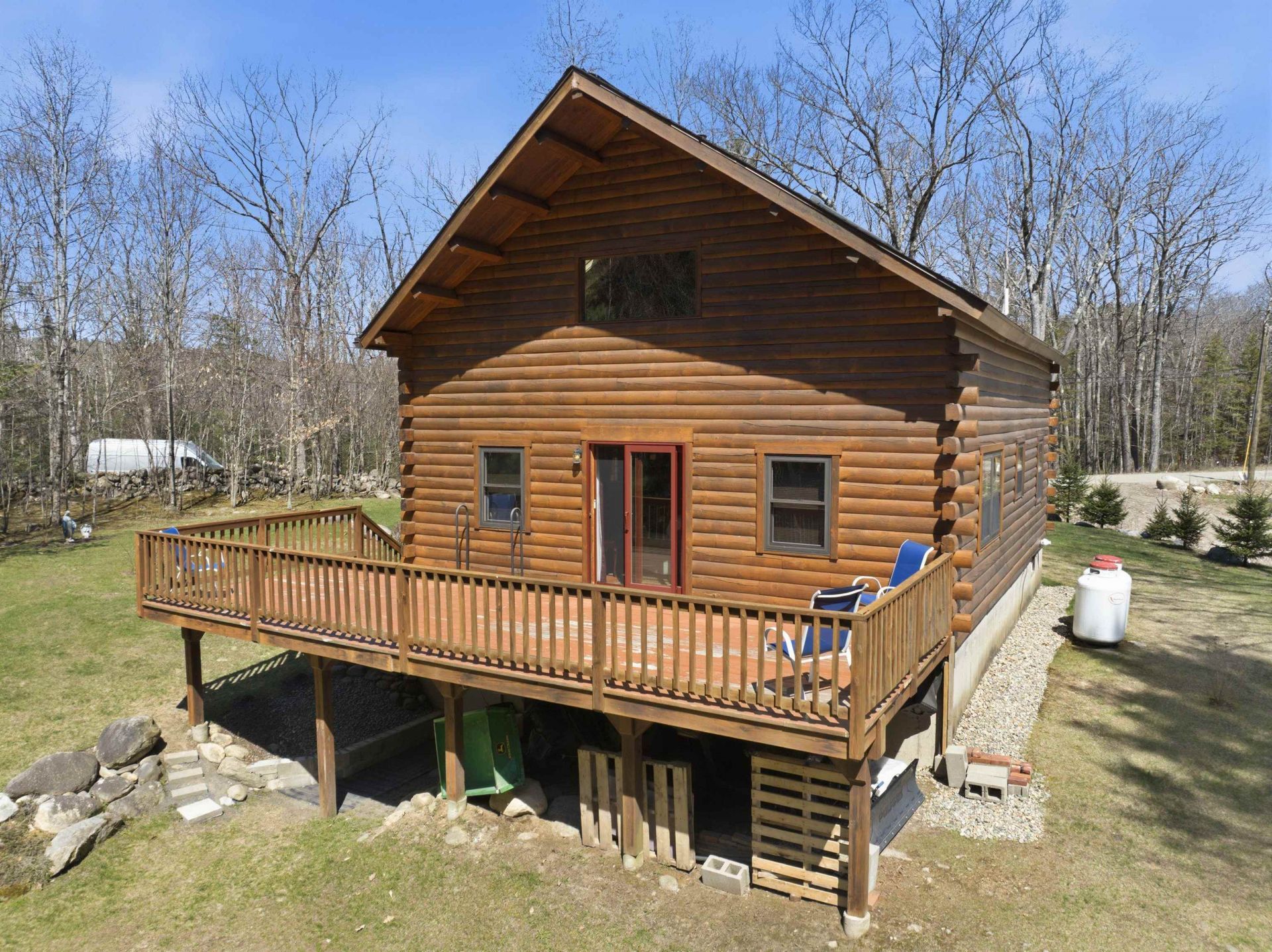 Nestled in the heart of the Mountain Lakes District, this charming 3-bedroom, 2-bath log cabin offers the perfect blend of rustic character and peaceful surroundings. Set on +/- 0.99 acres, the property features a quaint stream flowing through the backyard, creating a serene setting to relax and unwind. Inside, you'll find vaulted ceilings that enhance the open feel of the living space, along with classic log cabin details that bring warmth and charm throughout. A cozy wood stove adds both comfort and ambiance, perfect for New Hampshire's cooler seasons. In addition to the three bedrooms, there is a fourth room that can be used as an office, guest space, or additional storage?offering flexibility to fit your needs. Enjoy the outdoors from the large back deck overlooking the property, or relax on the screened-in front porch. The walkout basement provides additional space and potential for storage, recreation, or future finishing. As part of the Mountain Lakes District, you'll enjoy private access to the community lake and pool, making it easy to take advantage of all that New Hampshire living has to offer. Whether you're searching for a year-round home, vacation getaway, or investment opportunity, this property captures the essence of comfortable, scenic living.