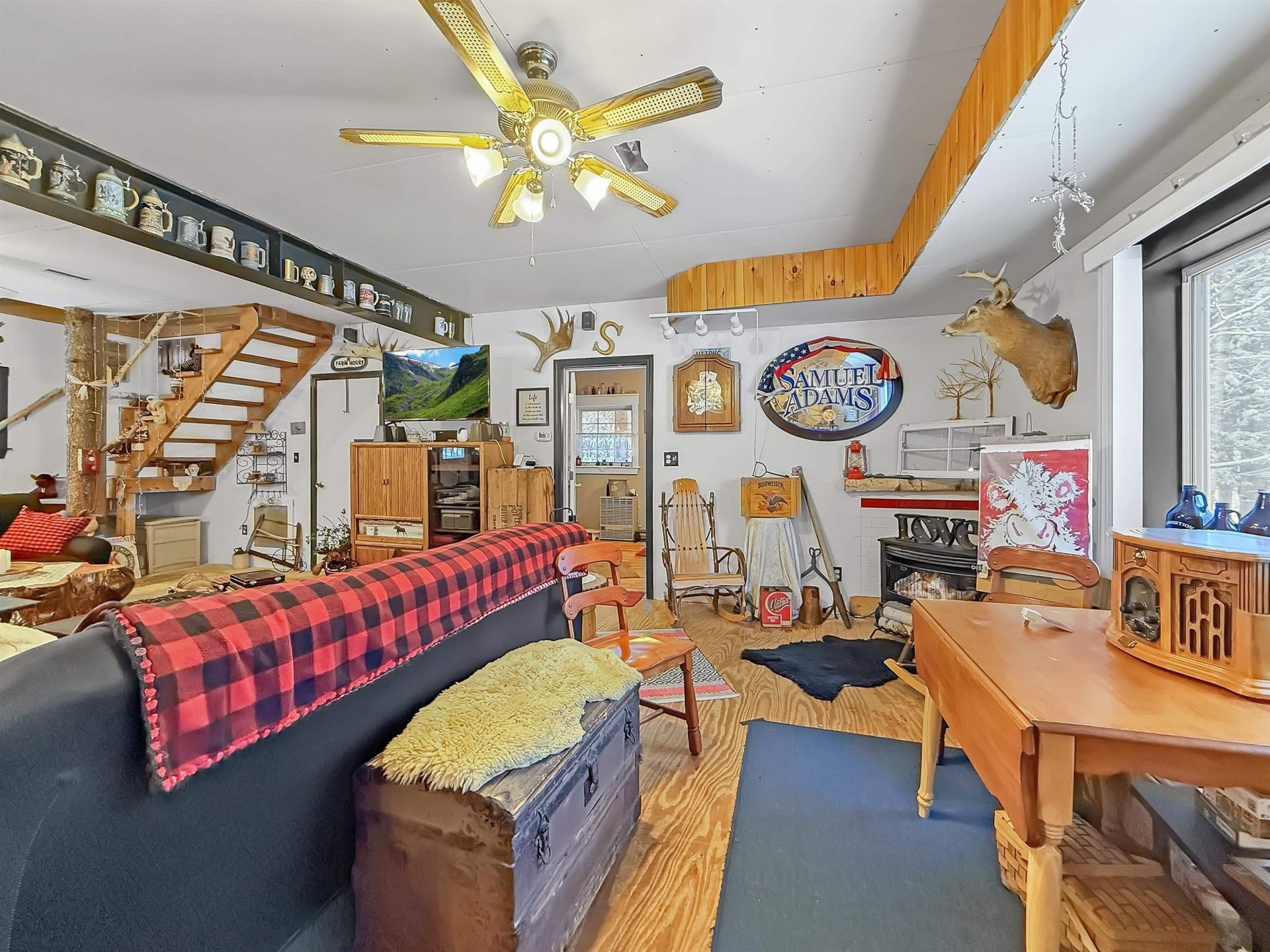 Welcome to 31 Egan Road in Stratford Hollow, New Hampshire, a well-maintained 3-bedroom, 2-bath home set on 5.32 private acres in one of the North Country's most desirable recreational areas. Built in 2004, this property offers the perfect combination of comfort, privacy, and access to year-round outdoor adventure. The first floor features an inviting open-concept kitchen, dining, and living area, ideal for entertaining family and friends. The kitchen includes a large bar with seating, creating a functional and social space at the heart of the home. Also on the main level are a full bathroom, storage room, and utility room for added convenience. Upstairs, you'll find three bedrooms and a 3-piece bathroom with a stand-up shower and laundry, offering practical living space for both full-time residents and vacation use. The home is equipped with efficient monitor heaters and a propane fireplace, along with 200-amp electrical service, private water, and private sewer, providing reliability and efficiency year-round. Step outside to enjoy the large farmer's porch, a perfect spot to relax, take in the peaceful surroundings, and entertain guests. The property also includes a newer garage with storage above, ideal for housing vehicles, snowmobiles, ATVs, or additional gear. Outdoor enthusiasts will appreciate the direct snowmobile and ATV trail access and close proximity to the Stratford Bog, a local favorite for fishing, kayaking, canoeing, and wildlife viewing. Whether you're looking for a primary residence, vacation getaway, or investment opportunity, this property offers everything buyers are searching for in Stratford NH real estate.