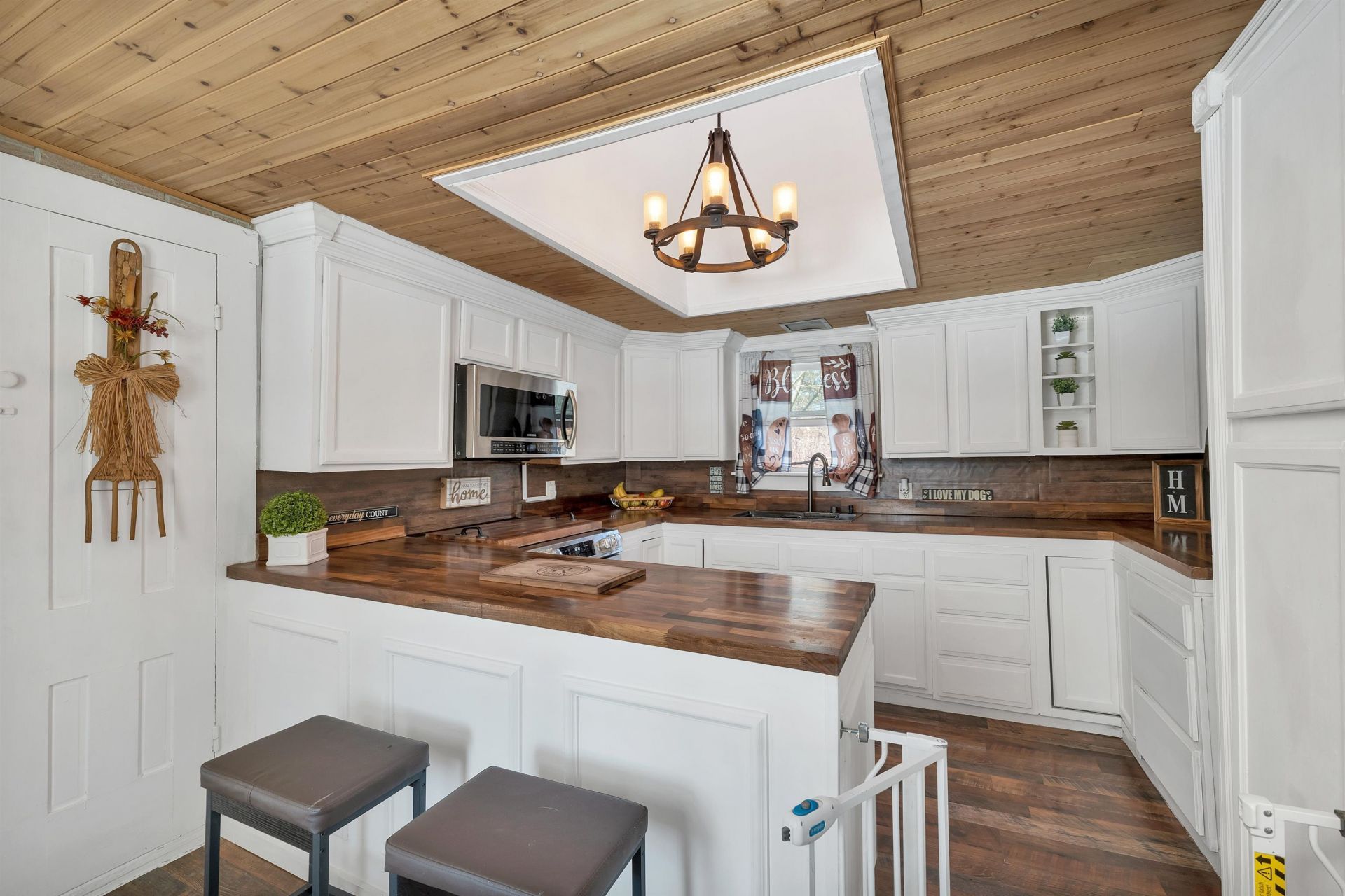 Charming Cape blending timeless New England character with a Gorgeous farmhouse style and thoughtful updates throughout. This warm and inviting home offers flexible living spaces, including a first-floor primary bedroom, first-floor office, spacious dining room, comfortable living area, and two additional bedrooms on the second floor. The updated kitchen features white cabinetry, warm wood countertops, stainless appliances, updated lighting, and a beautiful wood ceiling detail that adds character and charm. A large bonus room above the garage provides excellent additional space for entertaining, recreation, hobbies, or guests. Enjoy outdoor living from the welcoming covered porch overlooking the yard, or step outside to the fully fenced backyard featuring an above-ground pool and deck. Car enthusiasts, hobbyists, or those needing extra storage will appreciate the 3.5-car garage. Notable updates include a 2025 drilled well, 2025 200-amp electrical panel, 2026 water filtration system, 2023 garage roof, 2020 above-ground pool, 2017 furnace, 2017 septic tank and leach field, 2016 standby generator, updated flooring, kitchen improvements, new lighting, barn doors, and additional structural updates. Nearby access to Bear Brook State Park trails offers wonderful opportunities to enjoy the outdoors. A beautifully maintained property with historic charm, modern comfort, and room to enjoy inside and out.